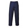 Derékrész hét bujtató pánttal, bedolgozott gumírozás a derékrész oldalain, két felvarrt, megerősített első zseb, egy gombos kis zseb és egy colostokzseb, gombos slicc